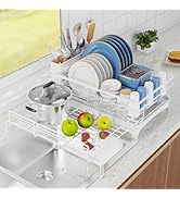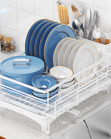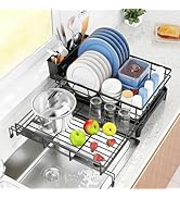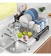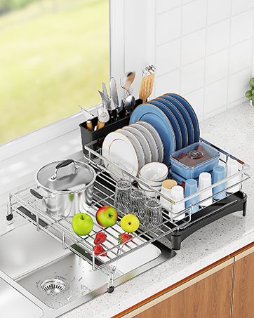 Fits Perfectly Over Your Sink COHOSEGE's dish drying rack can be extended to fit over your sink. When pulled out, the extension increases its length to 21 inches, nearly doubling its storage capacity. This allows you to accommodate up to 10 plates, 12 bowls, 6 glasses, 2 cups, 1 pot, and your silverware, keeping your kitchen tidy and organized.